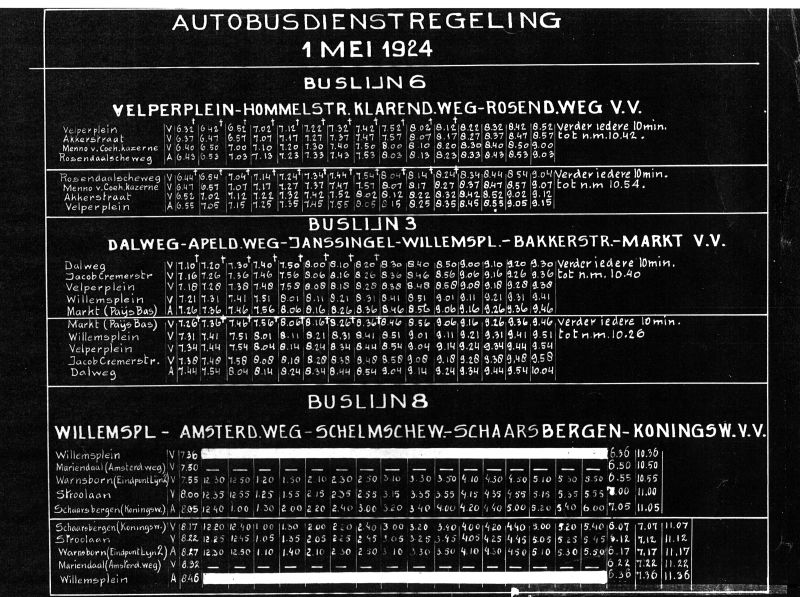 GETA 90, 13 januari 1940 - Willemsplein. Foto J. VoermanGETA - Autobusdienstregeling 1924