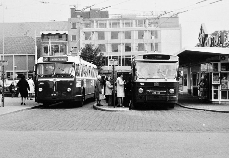 GVA 140 en 162, 11 oktober 1974 - Stationsplein. Foto Paul van Onzen