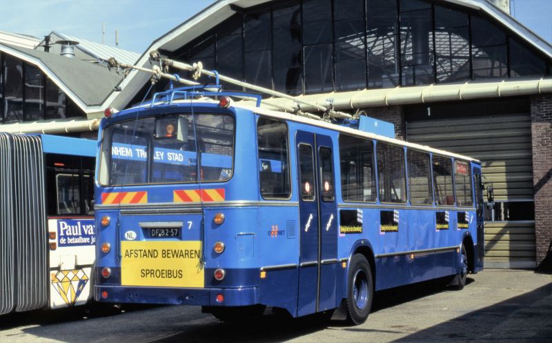 In mei 1987 werd begonnen met de ombouw van dieselbus 70, DAF MB200DKDL600-Den Oudsten van het bouwjaar 1972, tot ‘ontijzelingsbus’. De ombouw, waarbij de bus werd voorzien van stroomafnemers en apparatuur om antivriesvloeistof op de rijdraden te spuiten, was begin januari 1988 gereed. Hij kreeg als dienstwagen het nummer 7. In september 1988 bracht de 7 een bezoek aan partnerstad Croydon met een tentoonstelling over Arnhem. De 7 is in mei 2004 afgevoerd en werd camper wat hij nog steeds is.
